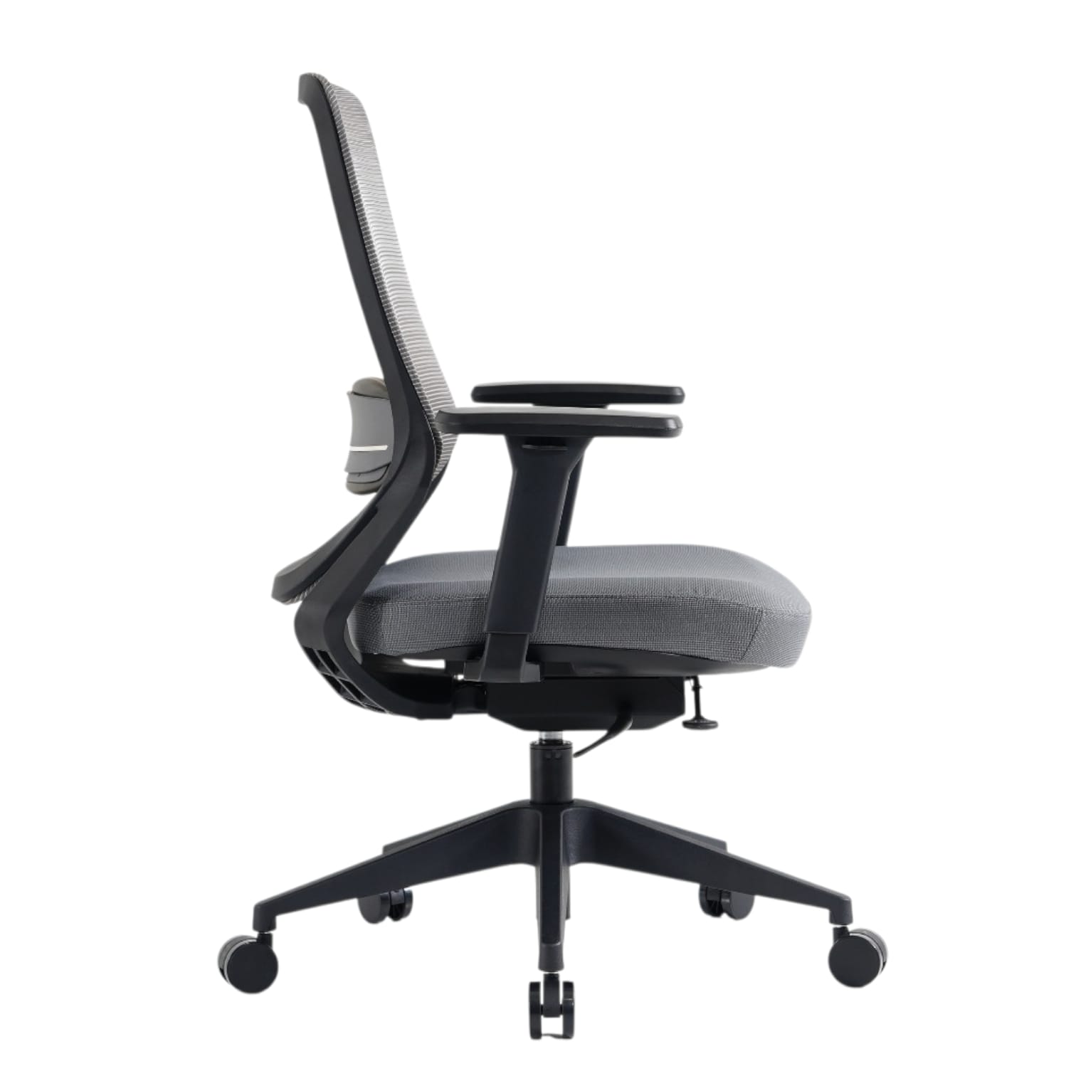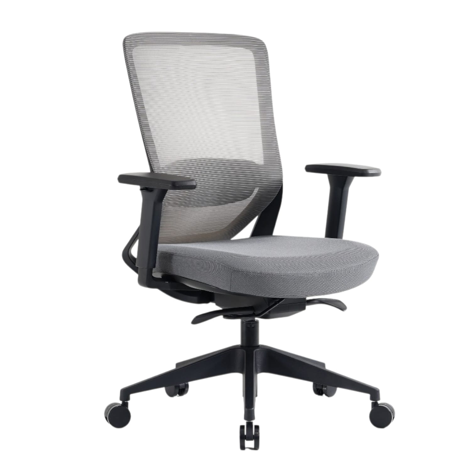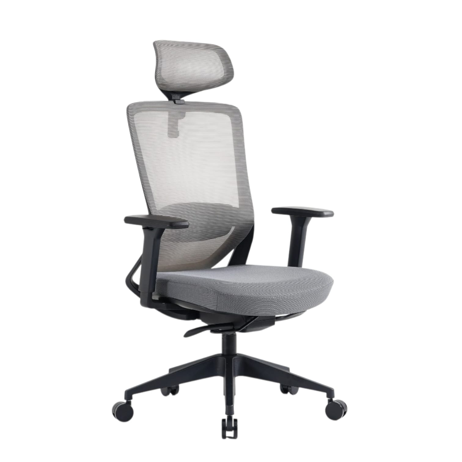 Nuestra silla ejecutiva sonrisa es cómoda y perfecta para largas jornadas laborales; Estructura de nylon color gris claro o negro con respaldo tapizado en tela mesh y soporte lumbar ajustable tapizado en PU vinipiel color gris, asiento de poliuretano inyectado tapizado en tela, brazos ajustables 3D con pad PU suave. Base de estrella kronos de nylon de 5 puntas y rodajas PU 60mm. Mecanismo inteligente de 4 posiciones de bloqueo con antishock y asiento slider.
