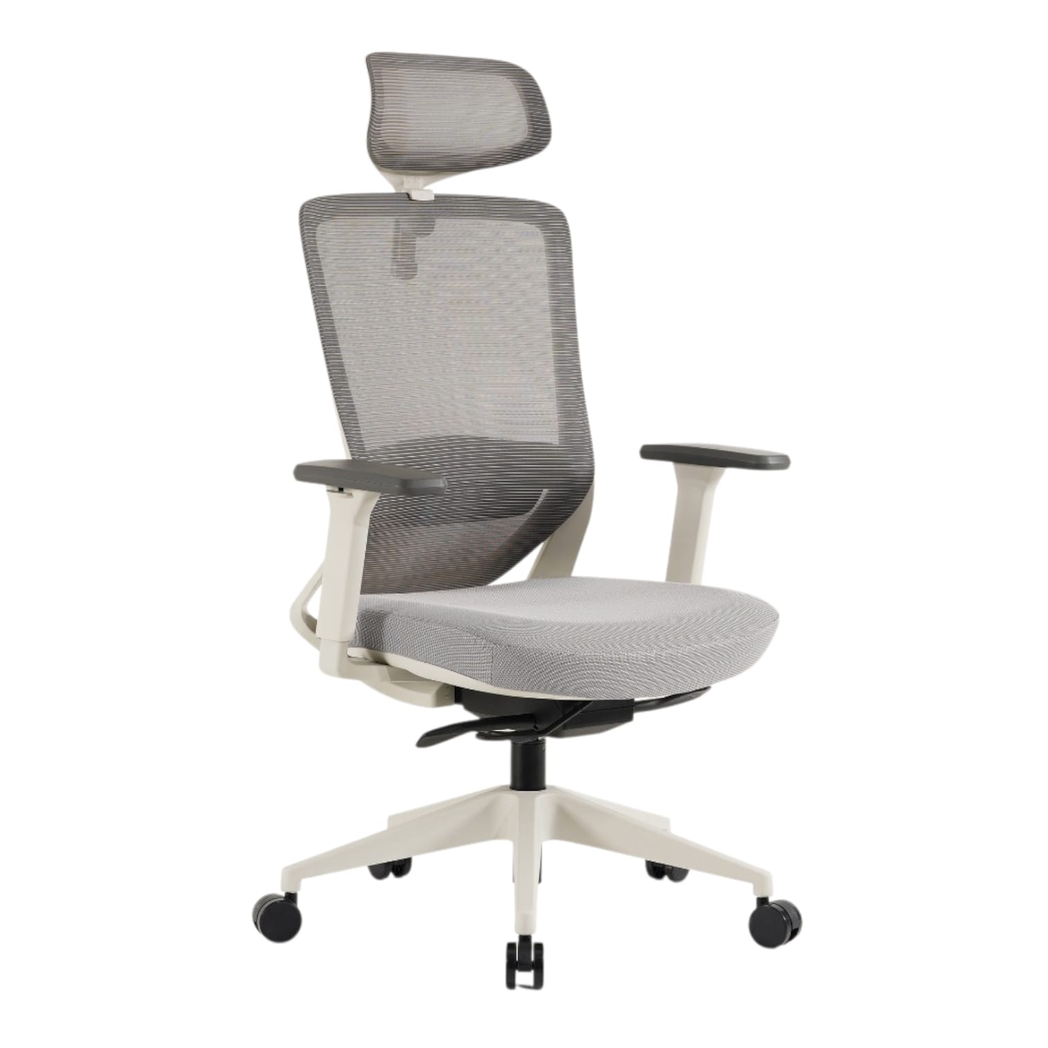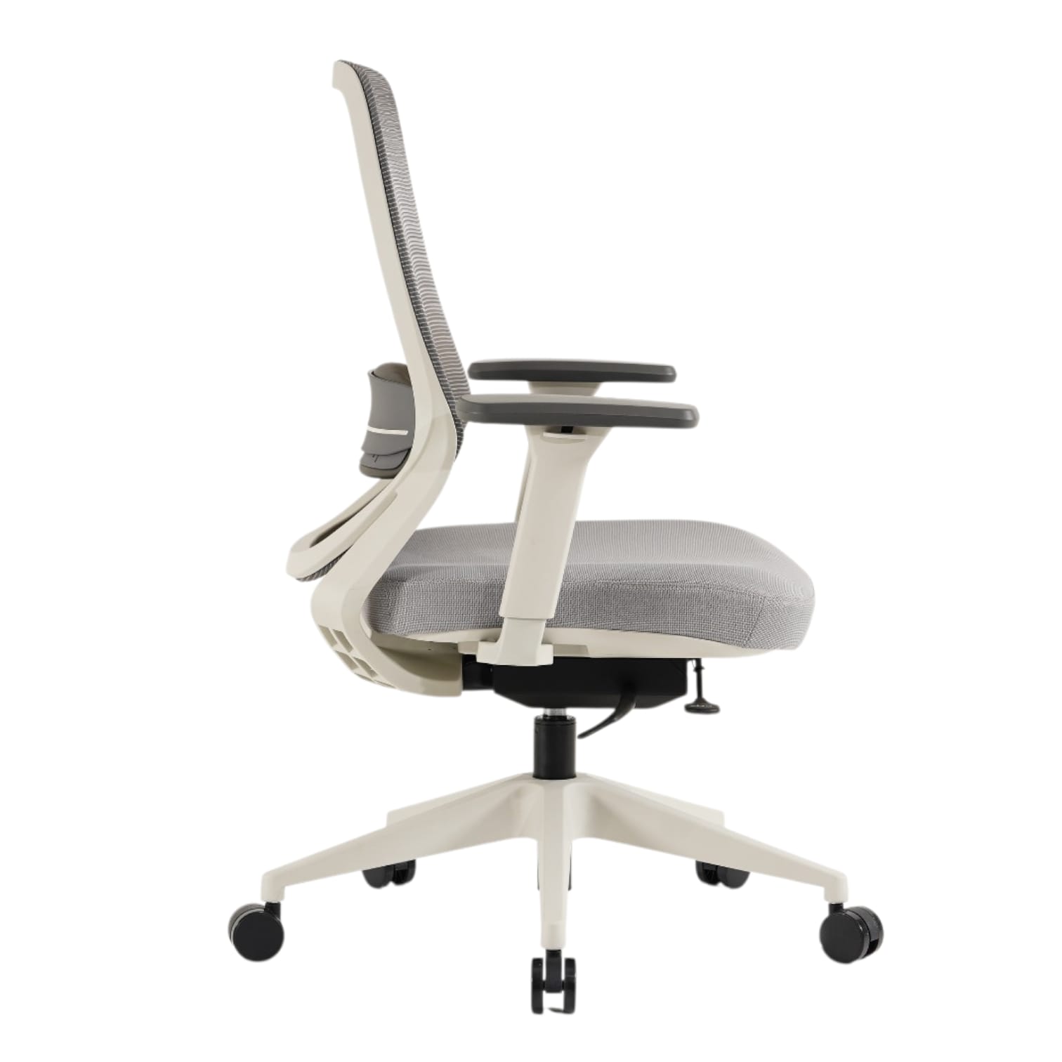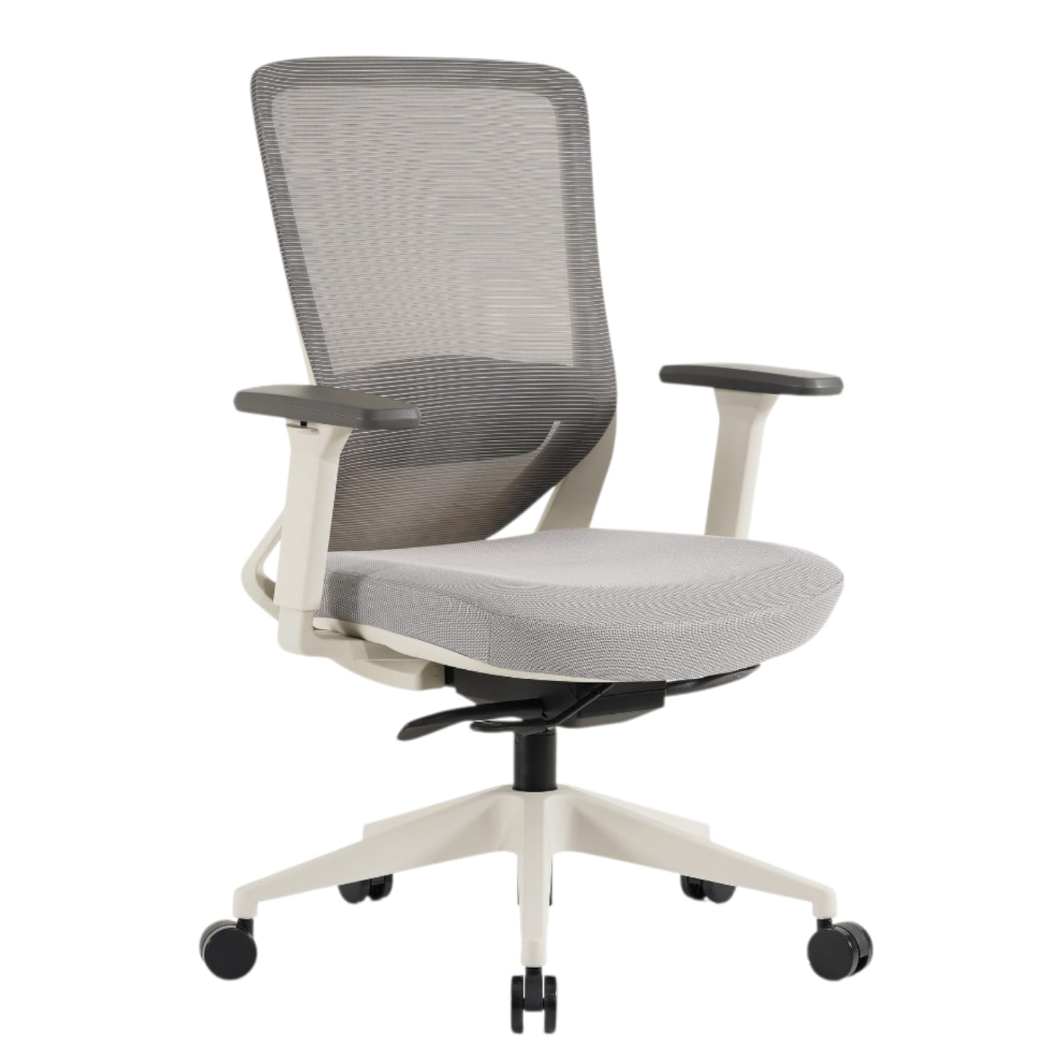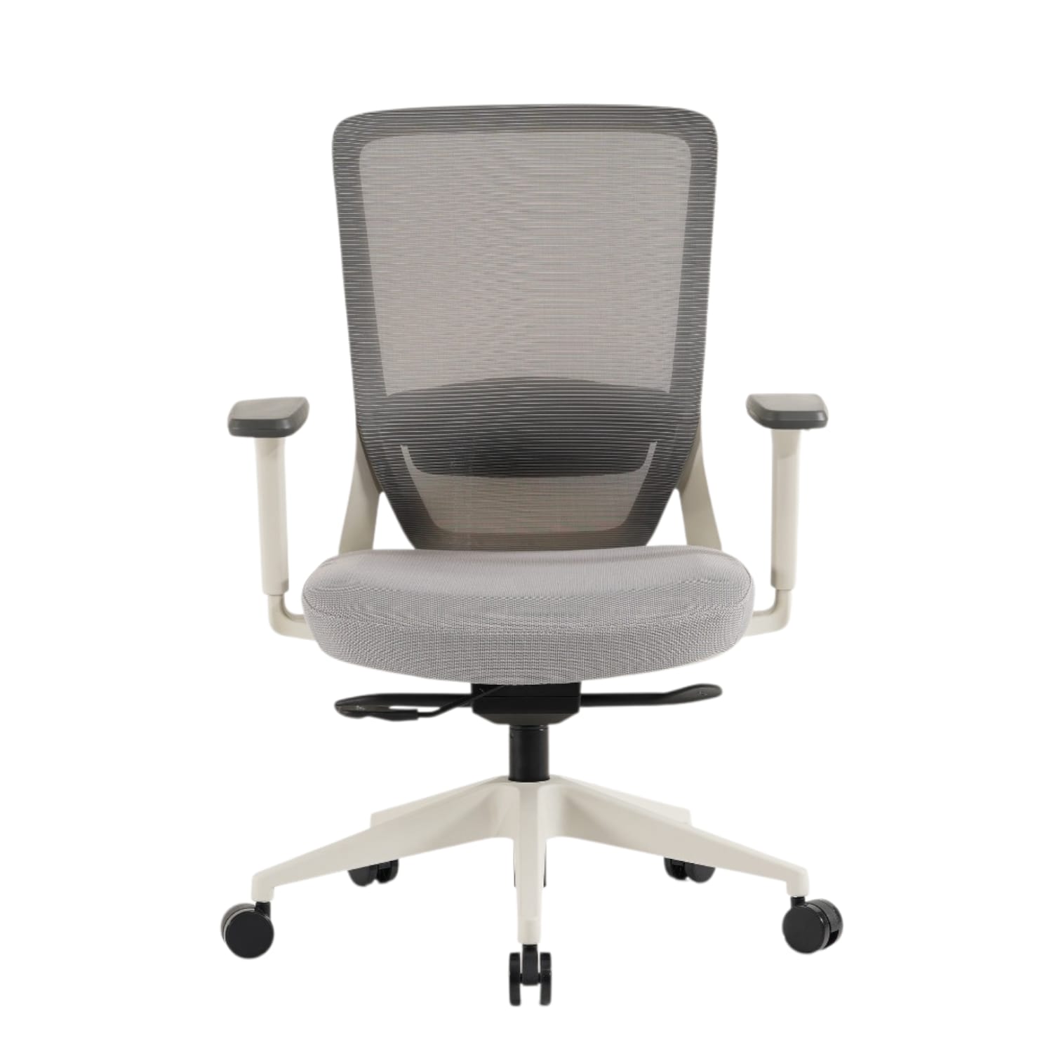 Nuestra silla ejecutiva sonrisa es cómoda y perfecta para largas jornadas laborales; Estructura de nylon color gris claro o negro con respaldo tapizado en tela mesh y soporte lumbar ajustable tapizado en PU vinipiel color gris, asiento de poliuretano inyectado tapizado en tela, brazos ajustables 3D con pad PU suave. Base de estrella kronos de nylon de 5 puntas y rodajas PU 60mm. Mecanismo inteligente de 4 posiciones de bloqueo con antishock y asiento slider.