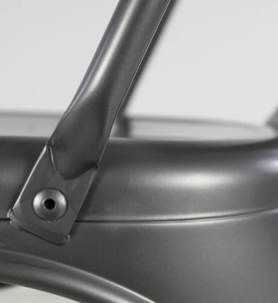 Estructura de acero tubular cuadrado calibre 20, acabado cromado y acojinada y tapizada en vinil negro.