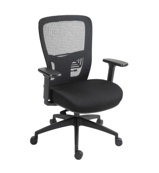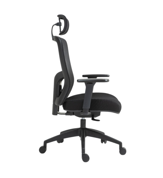 Nuestro sillón ejecutivo summer es cómodo y perfecto para largas jornadas laborales; Estructura de nylon color negro con respaldo tapizado en tela mesh con soporte lumbar esférico, asiento de poliuretano inyectado tapizado en tela color negro, brazos ajustables 3D con pad PU suave y cabecera ajustable. Base de estrella kronos de nylon nervada de 5 puntas con rodajas PU 60mm. Mecanismo inteligente de 3 posiciones de bloqueo con antishock y asiento slider.